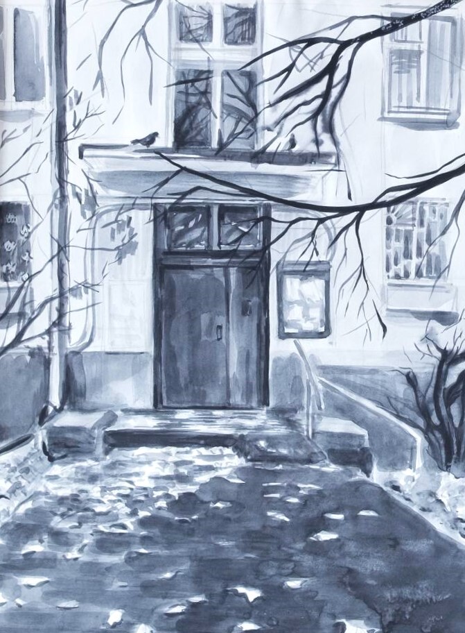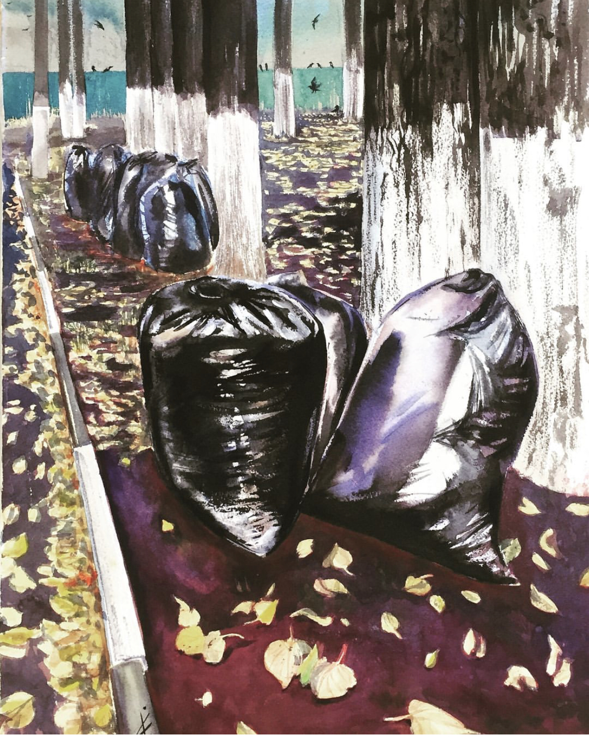 Дорога, подъезд, огромные трубы. Принцип один – я это увидела и нарисовала.